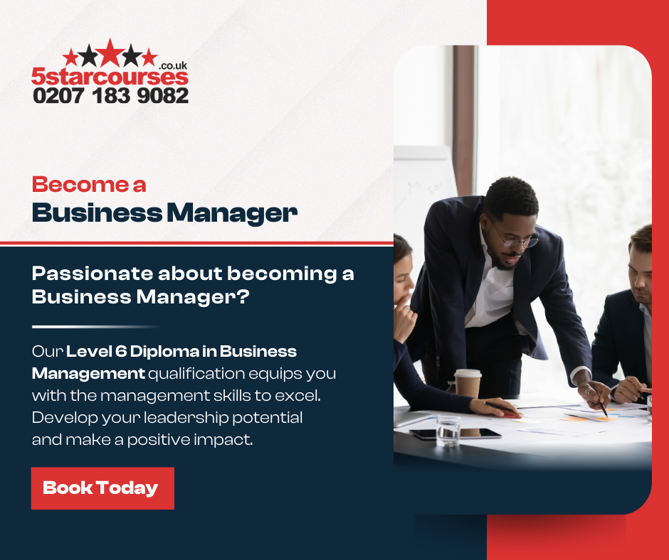 The Level 6 Diploma in Business Management (RQF) is designed to assist you in obtaining a promotion within your role or go on to enhanced entry for further study, as it is academically equivalent to a bachelor’s degree. The aim of the course is to provide learners with a sufficient foundation for a career in a range of sectors and specialisms. It has been developed to ensure that students gain a strong understanding of the core knowledge required to become a confident individual within the business and management sector.
