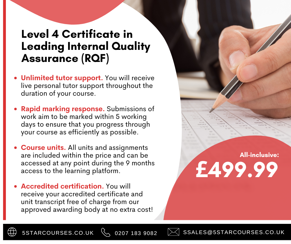Level 4 Certificate in Leading the Internal Quality Assurance of Assessment Processes and Practice (RQF) – £499.99!
